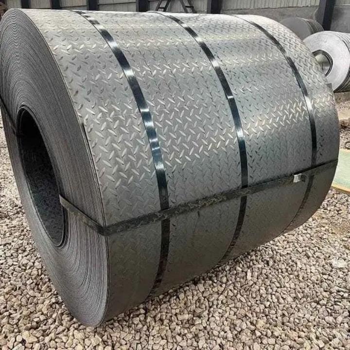 Hot rolled checkered coils are a type of hot rolled steel coils with rhombic shapes on its surface. Because of the rhombic patterns, the surface of the plates is rough, which can be utilized in manufacturing products like floorboards, deck boards, staircases, elevator floors, and other general fabrication.It is widely used in transportation, construction, decoration, equipment, floor, machinery, shipbuilding, and various other fields.